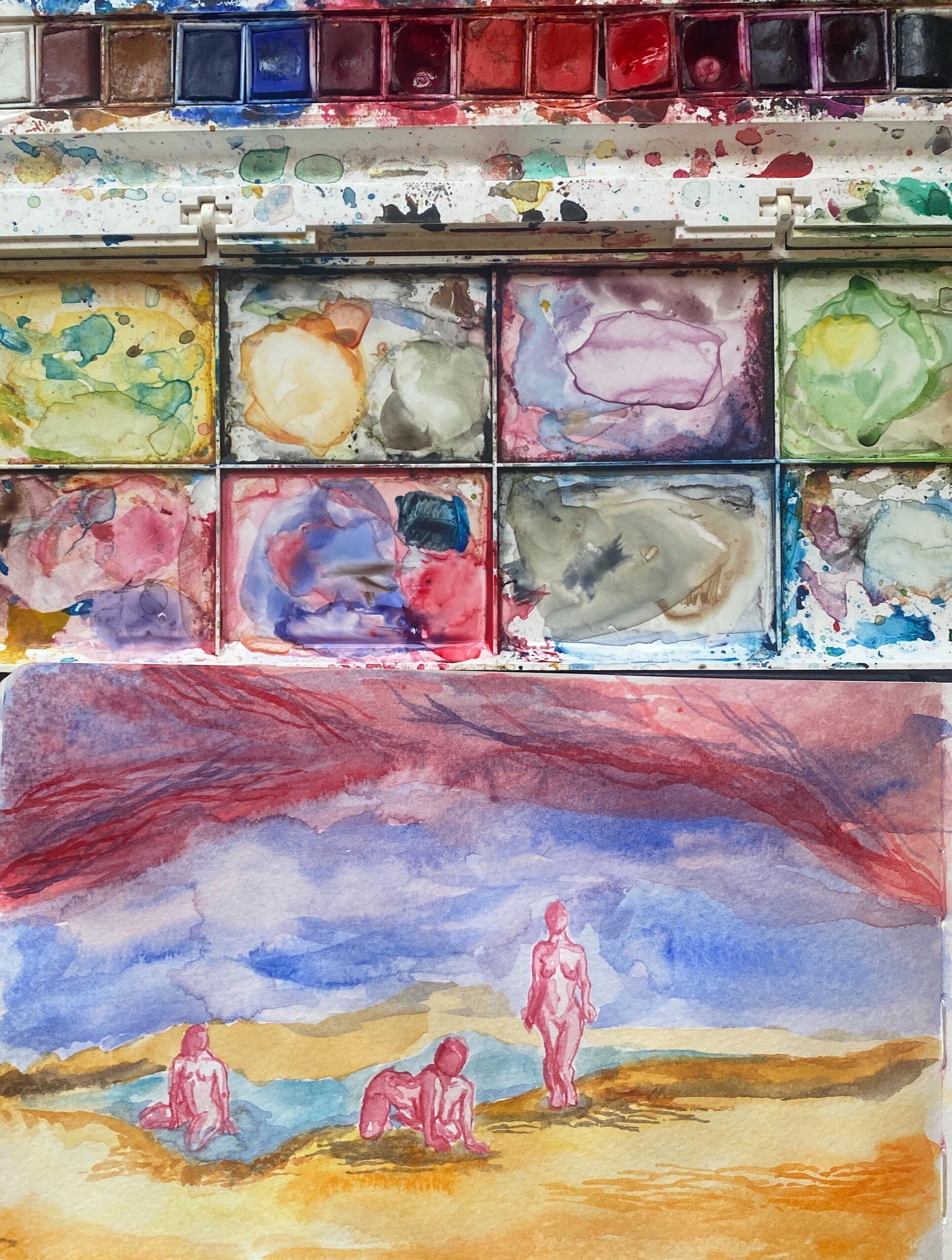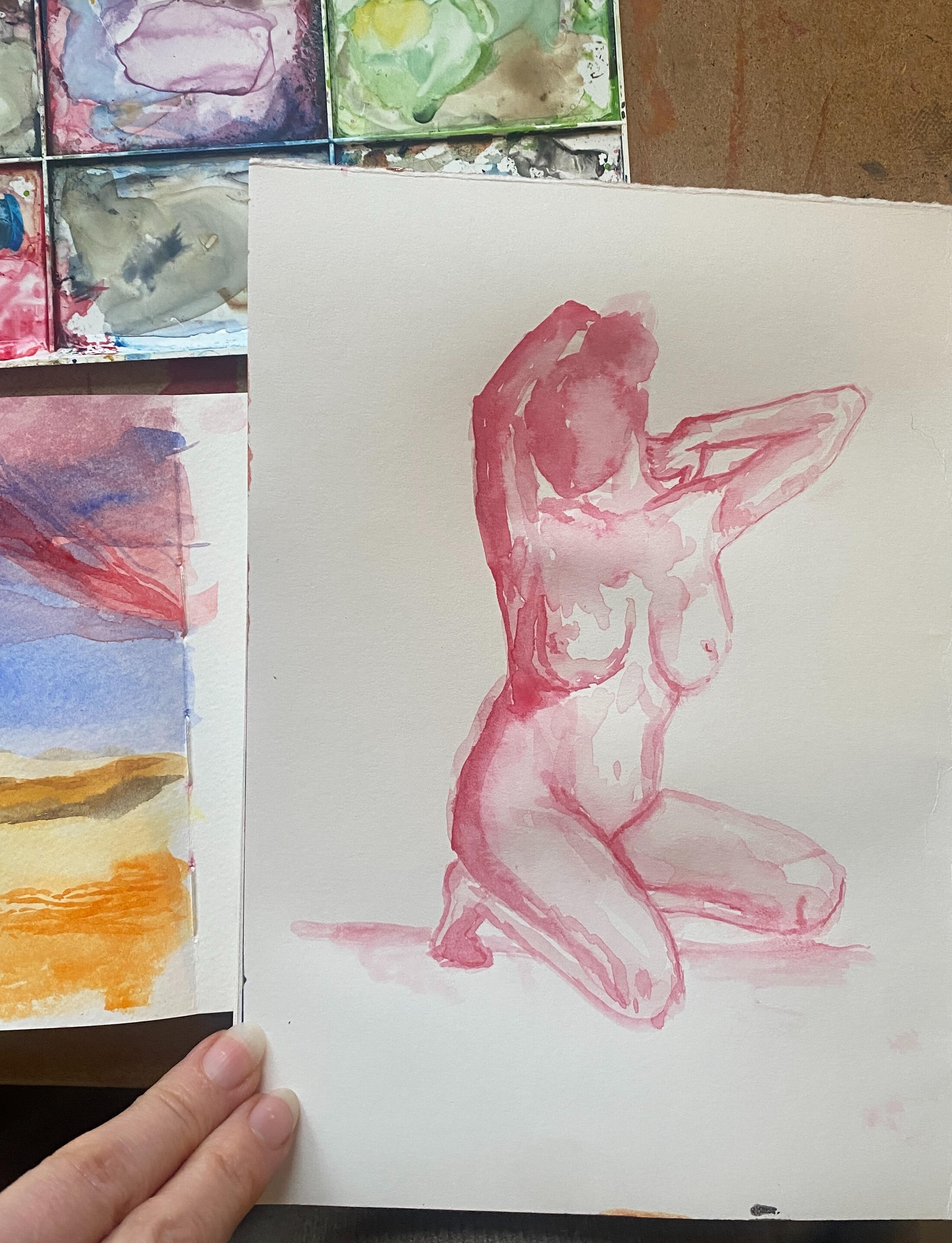"I’m leaning into emotions that have been stuck in my body for years by choosing quantity over quality. I’m making messy, expressive work on scraps and warping sketchbook paper, focusing entirely on what feels good rather than what looks 'right.' If a mark feels good or a colour pulls me in, I follow that. By ignoring the need for external approval, I’ve found a new kind of freedom. My work is finally feeling authentic because I’m making it for myself, not for others.”